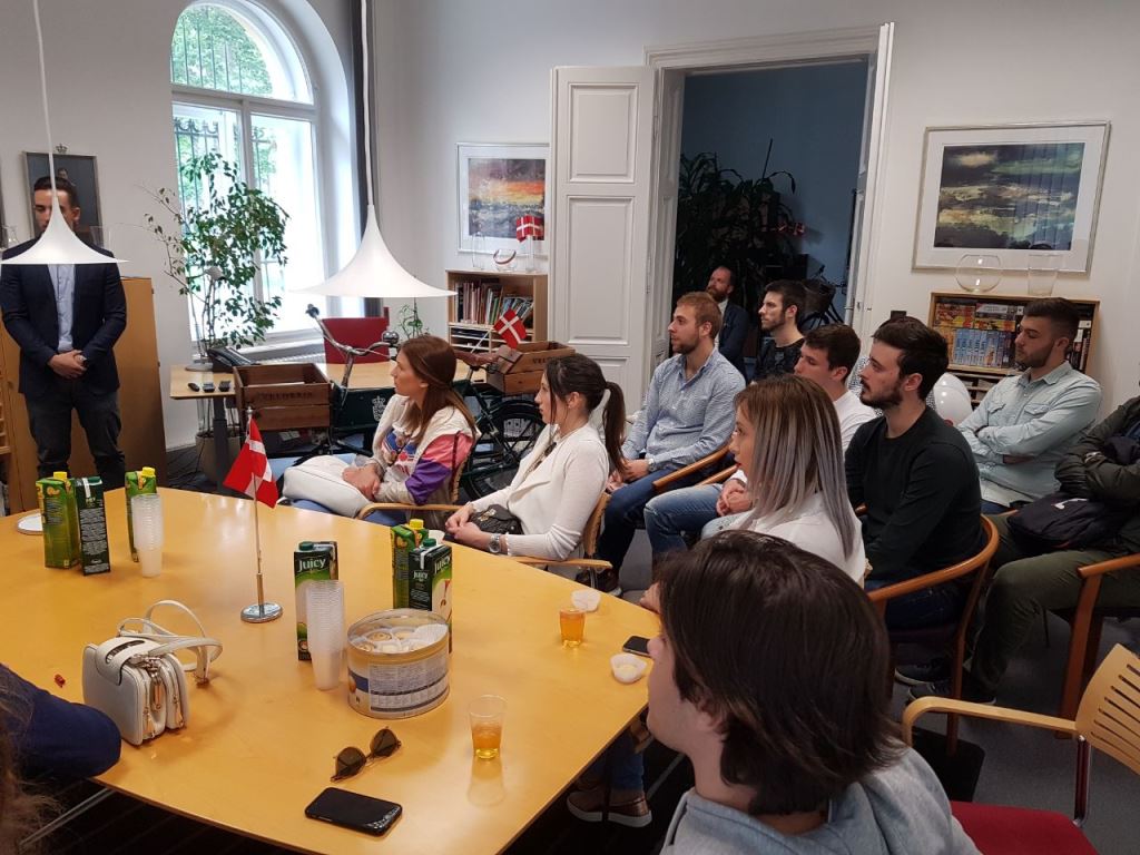 Studenti II. i III. godine Međunarodnih odnosa Sveučilišta Libertas su kao dio terenske nastave 25. svibnja posjetili Veleposlanstvo Kraljevine Danske. Primio ih je danski veleposlanik Nj. E. g. Anders Christian Hougård, a u razgovoru je sudjelovao i djelatnik veleposlanstva Tomislav Gugo.