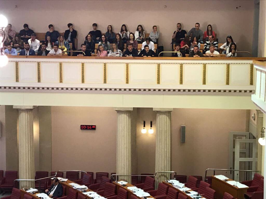 Prije sjednice Sabora na kojoj su prisustvovali, studenti su upoznati s poviješću – od osnivanja do danas s naglaskom na najznačajnije događaje, informirani su o ulozi rada predsjednika i dopredsjednika Sabora, saborskih odbora i tijela te saborskih zastupnika. Obišli su i nekoliko najznačajnijih dvorana u kojima se primaju strane delegacije i u kojima zasjedaju odbori i tijela Sabora.